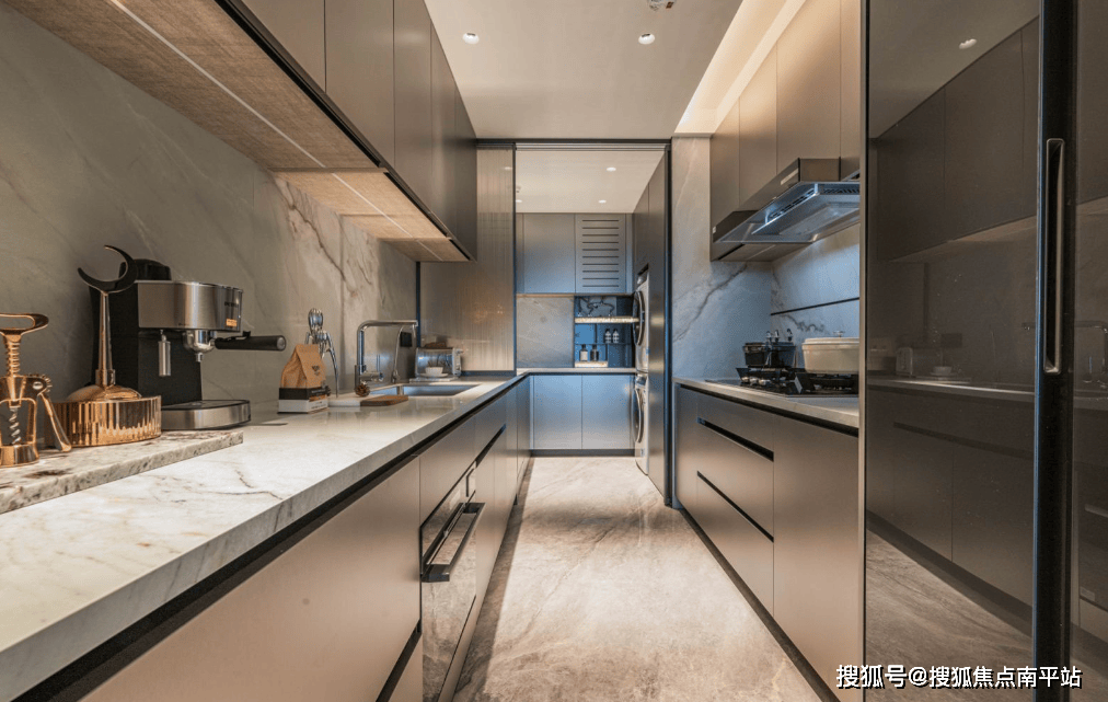 点睛一笔的地方,还在于西餐岛台的处理——刻意地与中厨拉开距离,这种程度的定制,就是为了给在厨房忙碌的人创造更愉悦的情绪场,让厨房也可以承载家庭社交