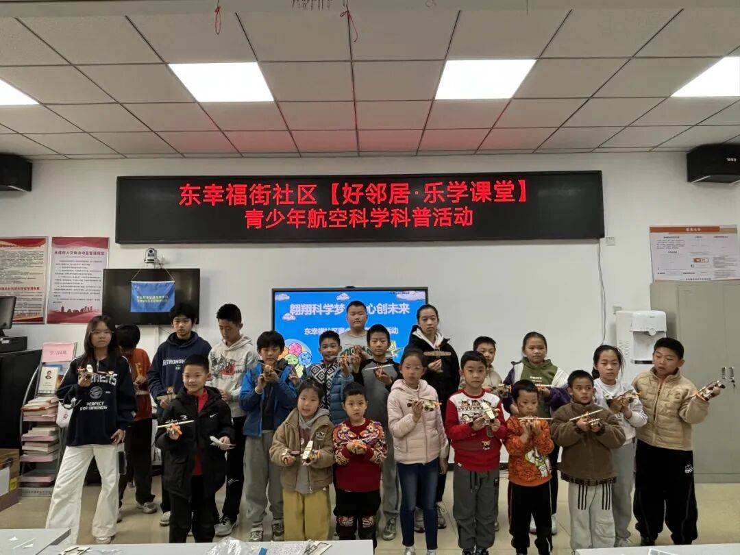 丰台街道东幸福街社区致力于丰富社区儿童精神文化生活,培养自然科学探索热情,举办青少年航空科学科普活动,活动通过模型展示、原理讲解、互动实验等形式,让孩子们近距离感受航空科学的魅力,激发科学思维与创新意识,同时搭建起社区儿童互动交流的平台,增强了社区凝聚力。
