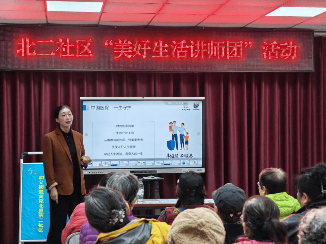 为提升辖区居民对医保政策法规的知晓率,和义街道北二社区邀请区医保局董文超副局长开展“美好生活讲师团——丰台区医疗保障待遇解读”政策宣讲活动。