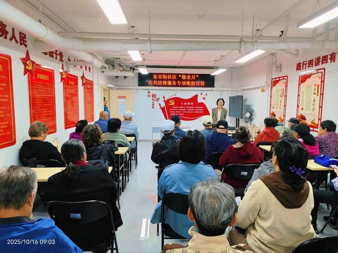 为维护老年人合法权益,五里店街道东安街社区妇联开展“敬老月”公共法律服务专项宣传活动,通过发放宣传手册、现场咨询答疑等形式,向老年人普及养老保障、财产安全等法律知识,将法治关怀送到家门口。