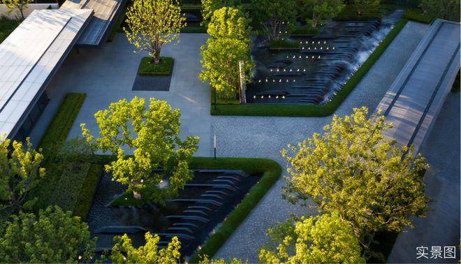 在设计上,会所采用围合式设计。下沉庭院通过大面积超白玻璃,巧妙的将庭院自然景观过渡到室内,使得室内和室外景观“内外合一”。