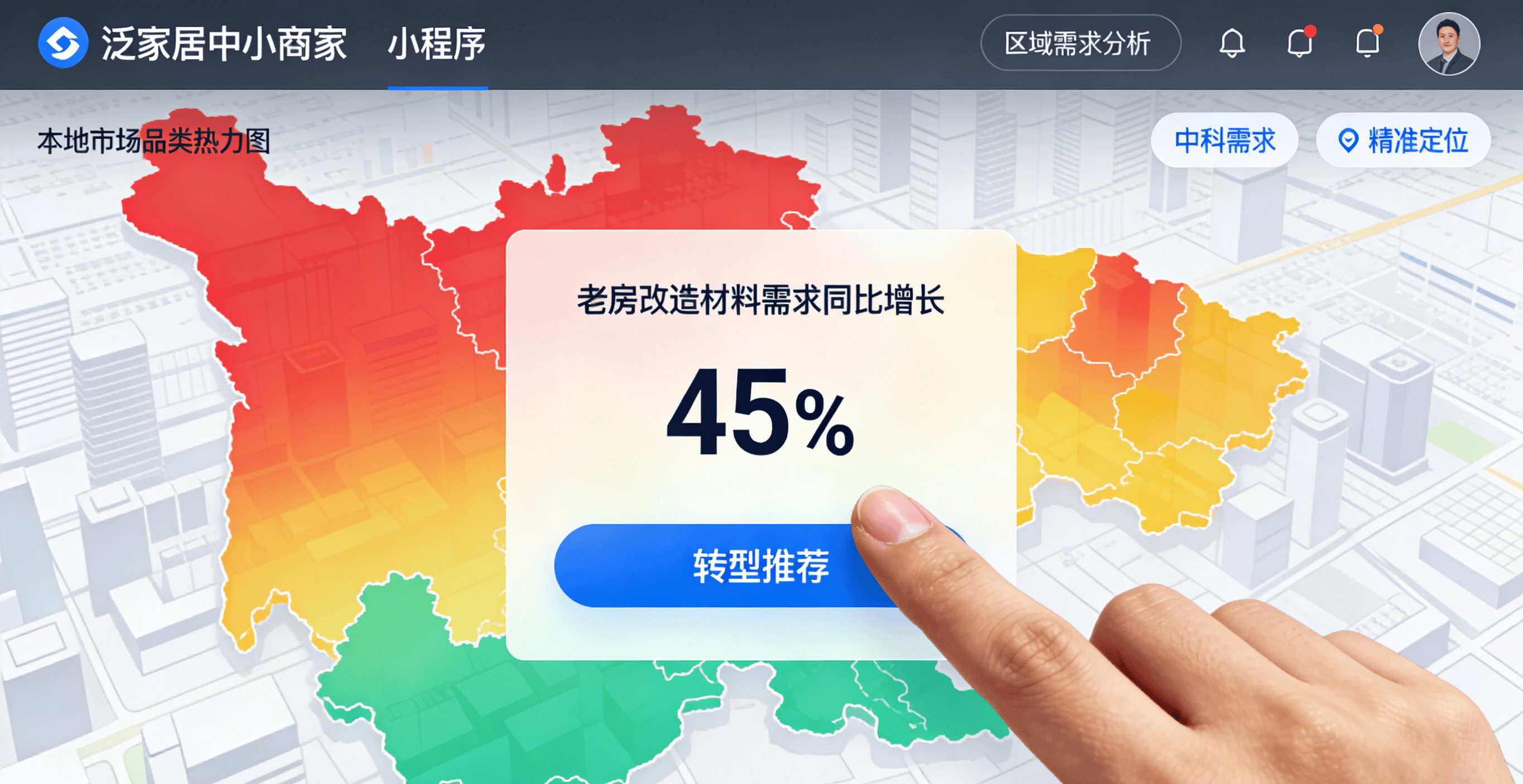 先帮你找准方向,避开同质化红海。小程序覆盖全国400+城市、300万+全品类商家,整合了装企、建材、家居等全产业链资源,能实时沉淀区域市场需求数据。中小商家不用再凭感觉跟风选品,通过平台就能清晰洞察本地市场的真实需求——比如哪些品类在老房改造中最畅销,年轻业主更偏爱哪种风格的家居产品。有位做传统建材的商家就分享,之前一直陷在低价竞争里内耗,通过平台发现本地老房改造需求旺盛,果断转型专注老房翻新材料,成功跳出红海。