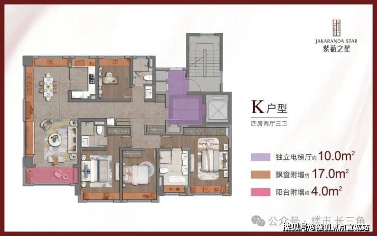 再看 141㎡四房,周边楼盘四房户型基本都是单套房设计,家里来客人住客房,就得和主人共用卫生间,别提多不方便。而紫薇之星不仅四开间朝南,让每个房间都 “喝饱” 阳光,还打造双套房,主卧堪比豪华酒店配置,另一间套房给孩子住,学习、休息都有独立空间。剩下的两个房间,不管改成书房、儿童房,还是客房,都宽敞又实用。