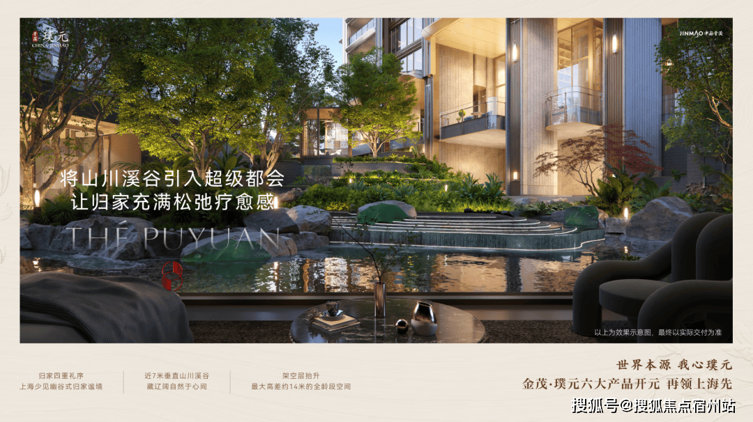 在繁华都市中,金茂·璞元别出心裁地营造出一种自然奢适的“Slow Living”慢生活方式,打造美术馆级家外之家,将恒温泳池筑入都市丛林,对望跌水飞瀑,感受天地辽阔浓缩于此的自然疗愈
