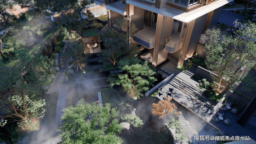 社区,景观从炫耀式造景转向疗愈式体验的趋势,让业主身处闹市却仿佛隐于山林近7米垂直高差峡谷庭院,社区高约5-8.3 米全架空层设计