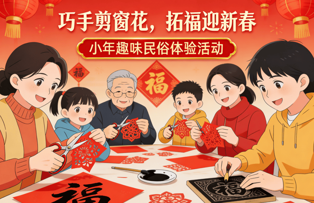 活动内容:巧手剪窗花,拓福迎新春。小年当天开展剪窗花、拓福字趣味体验活动,让读者亲手创作传统民俗作品,在折剪、拓印的趣味操作中感受小年的浓厚氛围,体验非遗民俗的独特乐趣,把新春的福运亲手“剪”回家、“拓”出来。