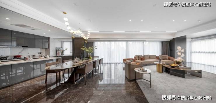 客厅采用2.4米高电动开启窗,一键切换开放阳台模式,引入自然光景。全屋配置德国卡德维浴缸(30年质保)、当代五金件及Poliform家具,与洲际酒店同款标准。