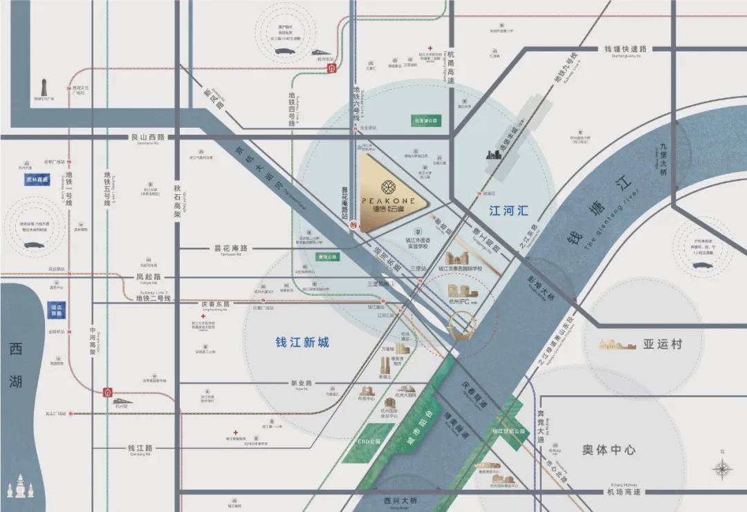 项目周边黄金3km范围内,汇集【4个4】全顶级配套,坐享钱江新城1.0发展20年积淀成果。