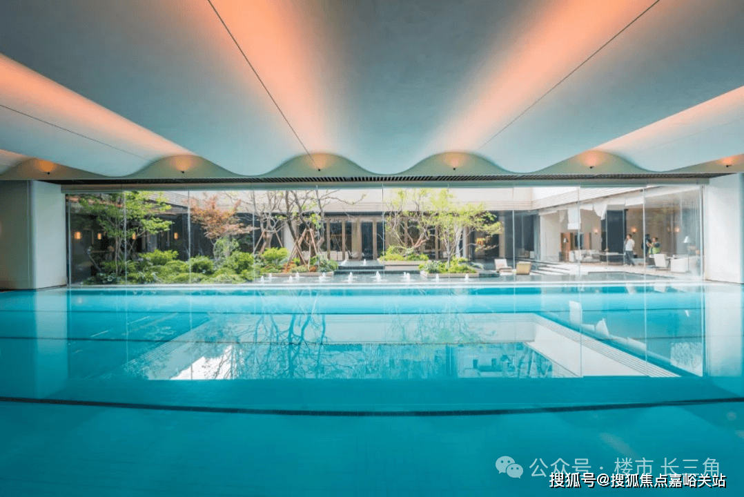 约2.4米宽巨幅玻璃,且通过精致的玻璃交接细节处理增进室内外空间的融合,强调泳池的无界感,真正实现了无边泳池的效果、质的飞跃。