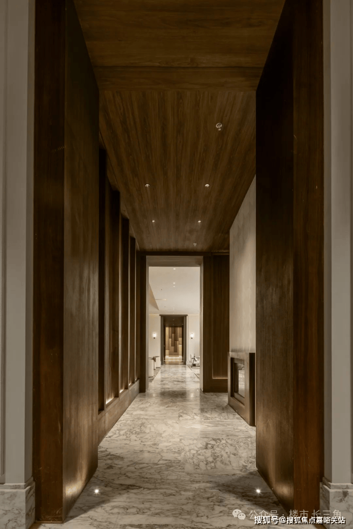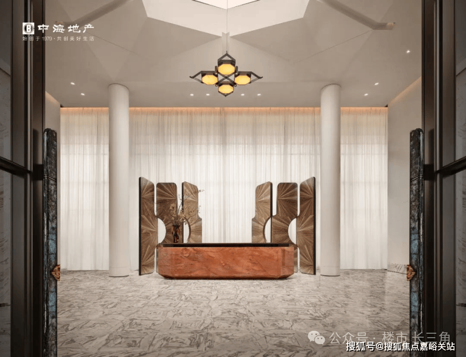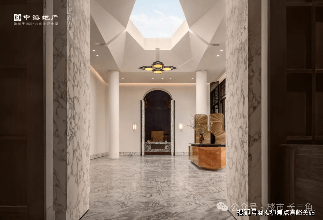 1430平,项目用四面通透的开阔视野,将下沉景观融合。落客光厅,大花白、挪威森林、黑曜石三种奢石手工拼贴地面,打造一所有温度、有深度、有气度的空间。